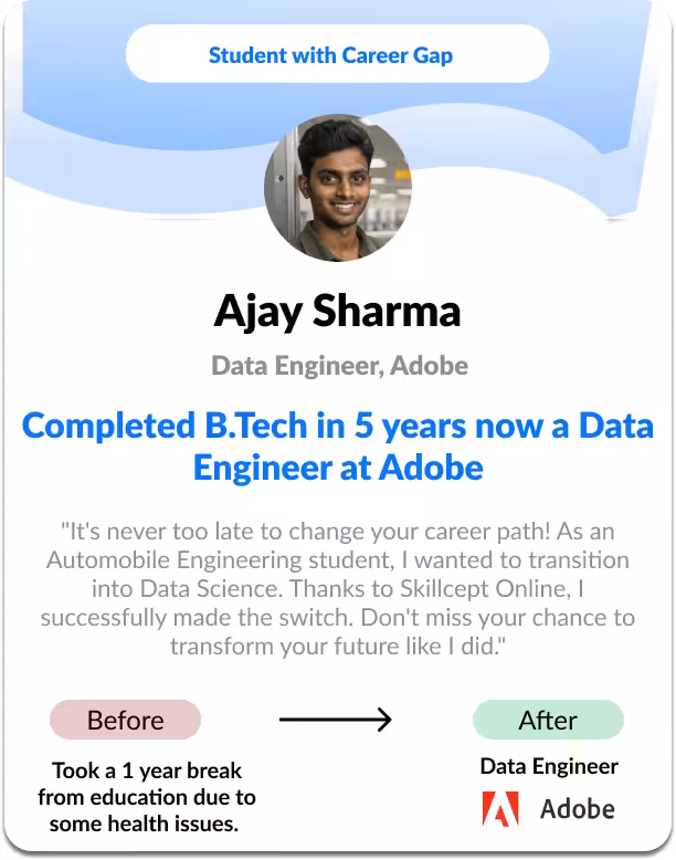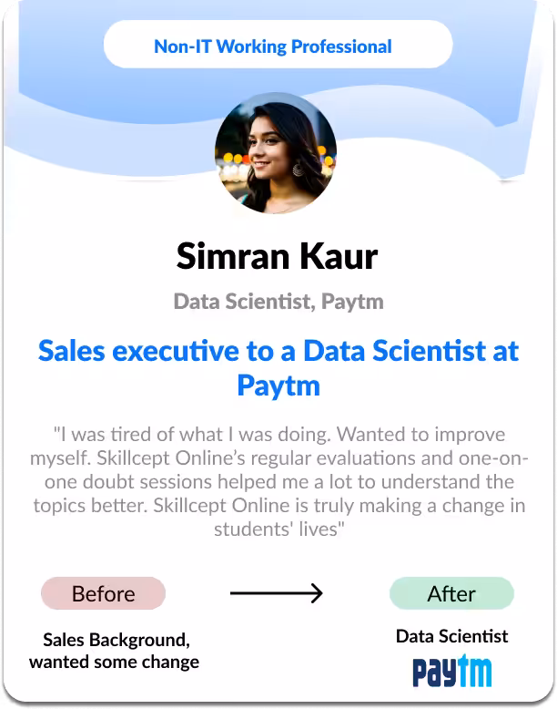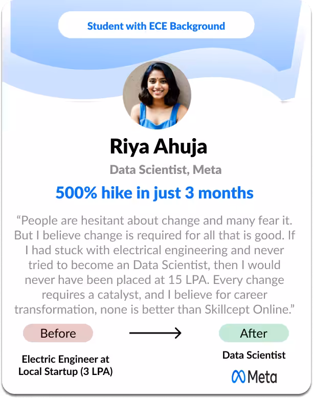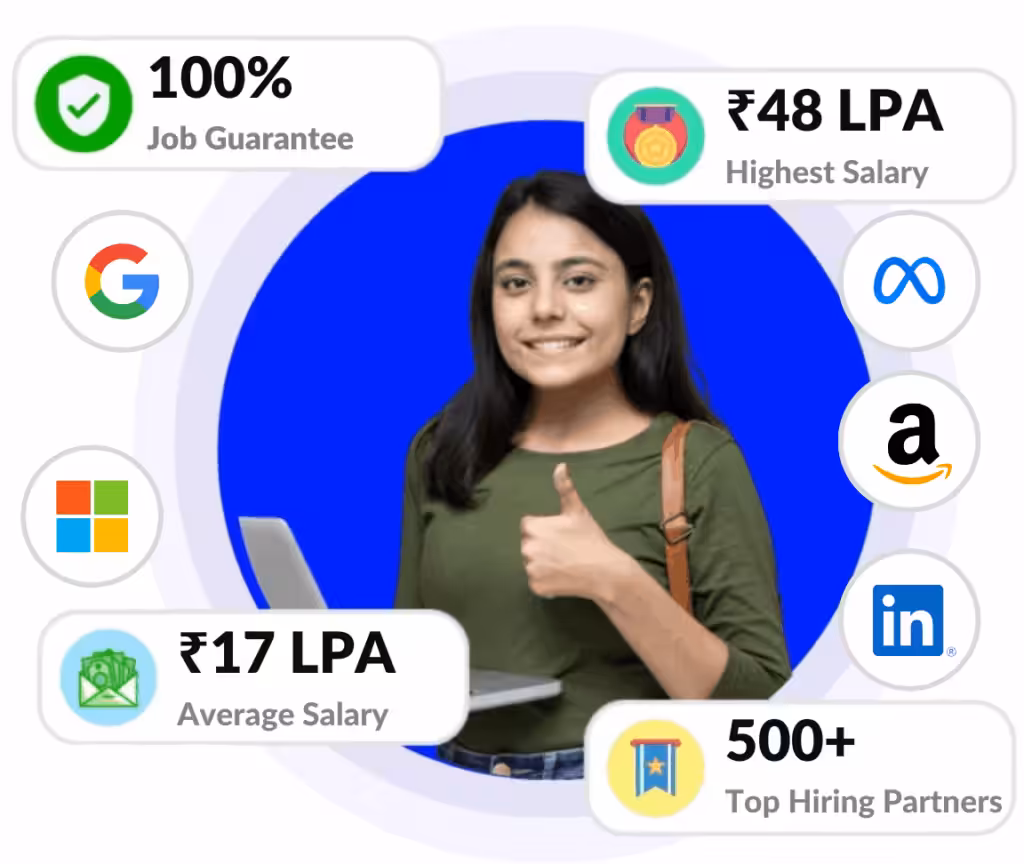 Pay the Career Services and Tuition Fees (Rs. 34,999) only after securing a job with a salary higher than ₹12 LPA or achieving at least a 75% increase in your current salary—whichever is greater. The amount will be deducted solely from your first month salary. Your success is our top priority.