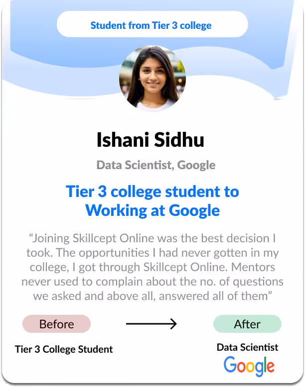 - ✔ Outcome: First job at ₹12 LPA+.